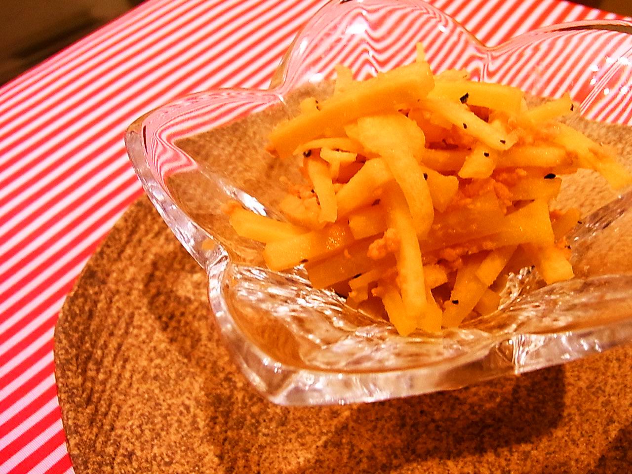 ・食べる直前に冷やしておいたおいもを冷蔵庫から出し、刻んだミントと和える。