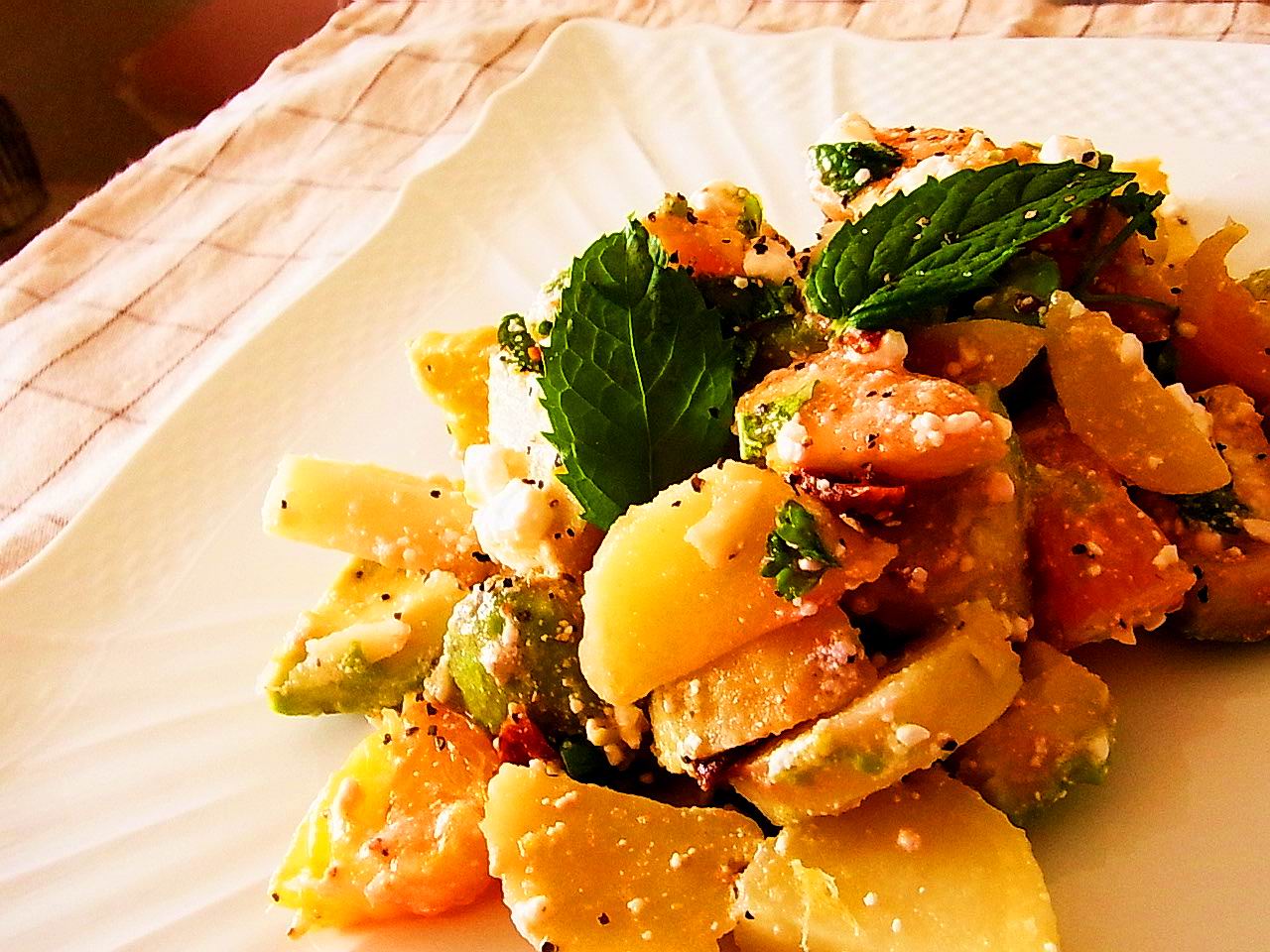 ・じゃがいもは、蒸すorゆでて、皮をむき、一口大に切って塩をふる。
