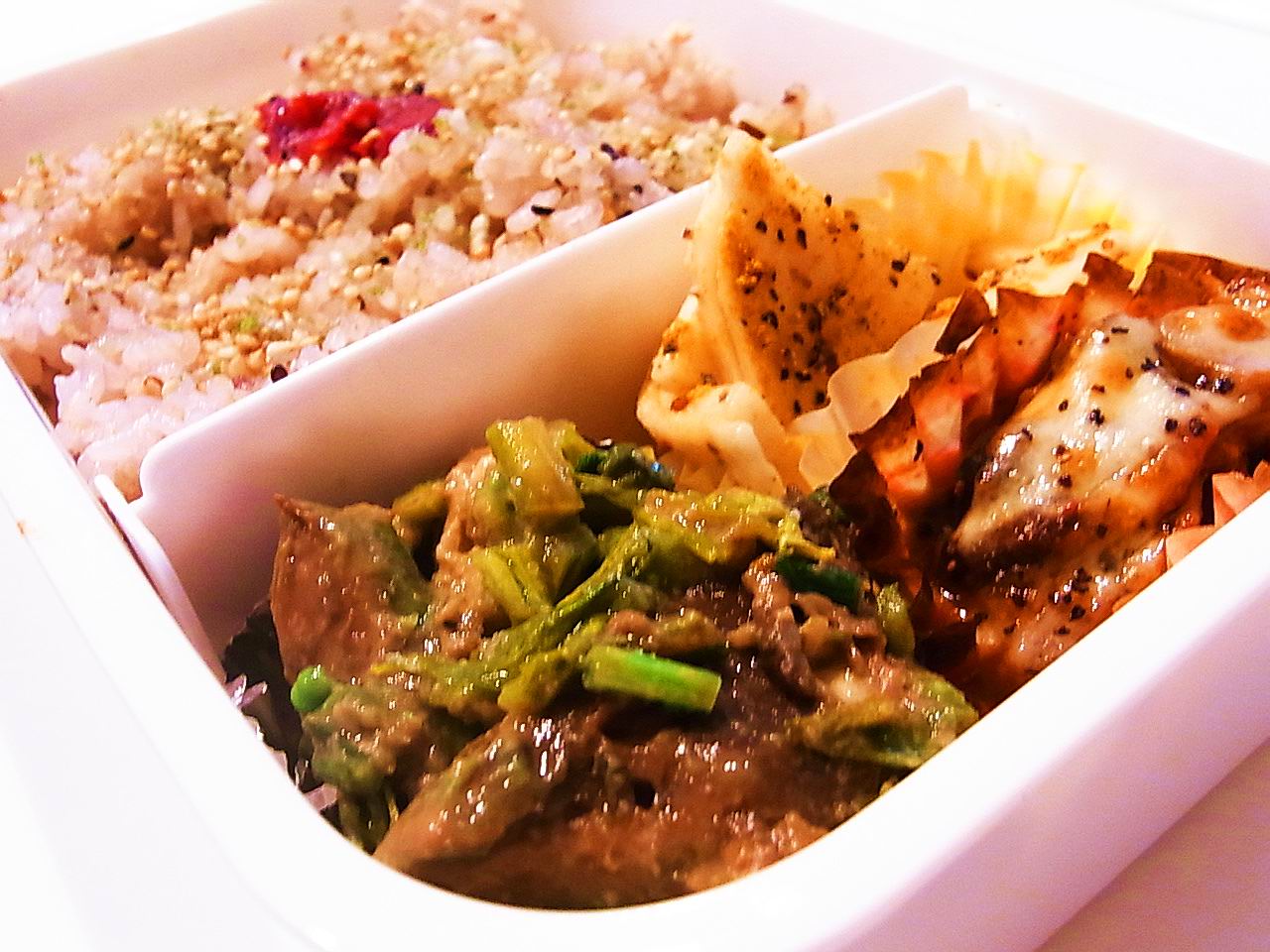 この間のきのこのトマト煮が残っていたので、火を通しなおし、チーズをかけて焼いてお弁当にIN。